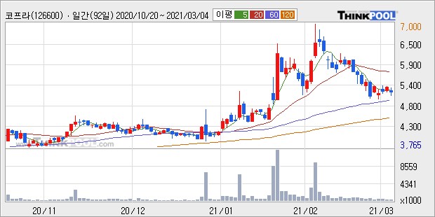 바로 코프라(126600)다. 코프라는 고기능성 폴리머 칩 제조 판매를 목적으로 설립되었으며 자동차 경량화에 이용되는 플라스틱 컴파운드를 생산하는 기업이다. 주요 제품 등에는 주요 원재료 Base(PA6, PA66, PP 및 기타)에 Filter(GF, MF 등)와 (원재료 비율 95%) 첨가제(1~5%)를 중합하여 제품을 생산한다. 자동차 연료효율을 높이는 방법 중 하나로 부품들을 고기능성 폴리머로 대체하는 것이 대안이 될 수 있어 코프라의 업황은 긍정적이라 투자자들의 주목을 받고 있다.