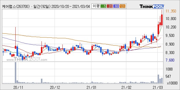 바로 케어랩스(263700)다. 케어랩스는 국내 1위의 헬스케어 플랫폼 기업으로 미디어플랫폼, 디지털마케팅, IT솔루션을 주요 사업으로 영위 중이다. 국내 유일 병/의원 대상 디지털마케팅 사업자로 국내 1위 헬스케어 플랫폼을 기반으로 효과적인 마케팅 솔루션을 제공하고 있어 투자자들의 주목을 받고 있다.