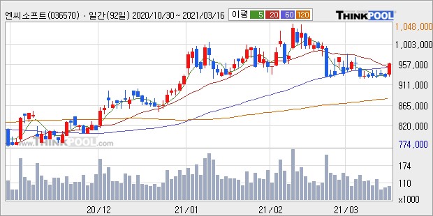 바로 엔씨소프트(036570)이다. 엔씨소프트는 온라인, 모바일 게임 소프트웨어 개발과 공급이 주요 사업이다. PC게임 '리니지'와 '리니지2', '아이온', '블레이드앤소울', 모바일 게임 '리니지M'. '리니지2M'. '프로야구 H2' 등이 주요 게임으로, 종속회사 엔씨다이노스를 통해 프로야구단을 운영하고 있다. 또한 모바일 게임 '리니지M'과 '리니지2M'이 서비스 시작 이후 꾸준히 구글 Play스토어 매출의 순위 상위권을 유지하고 있어 투자자들의 주목을 받고 있다.