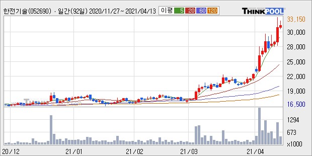 국내외 원전 산업 확대 기대감에 주가 상승세 : 한전기술(052690)