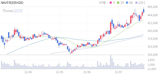 바로 NAVER(035420)다. NAVER는 국내 1위 포털 서비스를 기반으로 광고, 쇼핑, 디지털 간편결제 사업을 영위하고 있으며, 공공/금융 분야를 중심으로 클라우드를 비롯한 다양한 IT 인프라 및 기업향 솔루션 제공을 확대해가고 있다. 웹툰, Zepeto, V LIVE 등 다양한 콘텐츠 사업을 통해서도 글로벌 사업 기반을 확장하고 있는 ICT 기업으로 투자자들의 주목을 받고 있다.