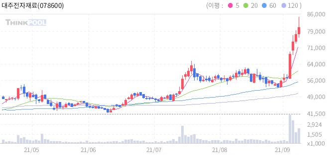전기차 성장과 소재 사용량 증가의 이중수혜 업체에 집중 : 대주전자재료(078600)