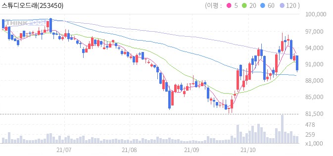 글로벌 온라인동영상서비스(OTT) 시장 규모가 올해 144조원에 달할 것으로 추산된다. 다음 달 디즈니플러스와 애플TV플러스 글로벌 거대 기업들의 본격적인 진출로 한국 콘텐츠 제작 시장은 호황을 맞을 전망이다. 아시아를 휩쓸던 한국 콘텐츠가 미국과 유럽 등 전 세계 1위를 기록하고 있어 한국 콘텐츠에 대한 인지도, 제작 역량, 가격경쟁력 등을 더욱 높게 평가받을 수밖에 없는 상황으로 제작사에 대한 투자자들의 주목이 상승하고 있다. 그러던 중, 레이더스탁 '로보추천'이 새로운 매수신호를 보냈다.