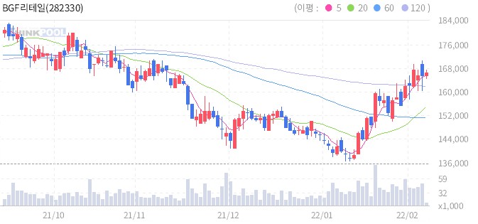 실제로 박신애 KB증권 연구원은 "BGF리테일이 일상생활 정상화에 따른 객수 회복 기대감이 유효하다."라며 "사회적 거리두기는 지속됐으나, 특수입지 매출 호조, 주류·안주류 판매 호조, 우호적 날씨 등에 힘입어 기존점 매출 성장률은 3%의 높은 수준을 나타낼 전망"이라고 밝혔다. 전문가들이 잇따라 긍정적인 의견을 제시하면서 주가도 최근 상승세를 보였는데, 레이더스탁 '로보추천'이 새로운 매수신호를 보냈다.