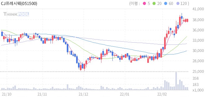 바로 CJ프레시웨이(051500)다. CJ프레시웨이는 식자재유통사업을 영위하는 업체로 업계 최고 수준의 위생/안전시스템, 물류/IT 인프라를 보유하고 있다. 특히 아동 전문 식재료 브랜드 아이누리와 케어푸드 전문 브랜드 헬씨누리 등을 통해 식자재 유통의 차별화를 내세우고 있다. 모바일 식권 및 맛집 플랫폼 '식신', 가상주방 서비스 플랫폼 '쿡썹'과 각각 업무협약을 체결하고, 푸드테크 기반의 밀·비즈 솔루션 개발을 위해 힘을 합치기로 하며 투자자들의 주목을 받고 있다.