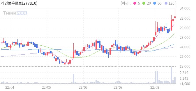 바로 레인보우로보틱스(277810)이다. 레인보우로보틱스는 카이스트 내 연구소인 휴보(HUBO) LAB에서 분사해 설립된 로봇 전문 기업이다. 현대로템과 협력하여 최근 방위산업 기술 지원센터와 대테러 작전용 다족 보행 로봇 신속 연구개발 사업 협약식을 가지고 국내 첫 군용 다족보행로봇 개발 사업에 착수했다. 대테러 작전용 다족보행 로봇은 원격 조종을 통해 험로 및 장애물 구간에서도 빠르고 자유롭게 움직일 수 있다. 무엇보다 사람이 다칠 수 있는 위험한 작전에 투입될 수 있고, 총기나 섬광폭음탄, 최루가스 살포기 등을 장착하는 등 아군 인명을 보호할 수 있을 것이라는 기대감에 투자자들의 주목을 받고 있다.