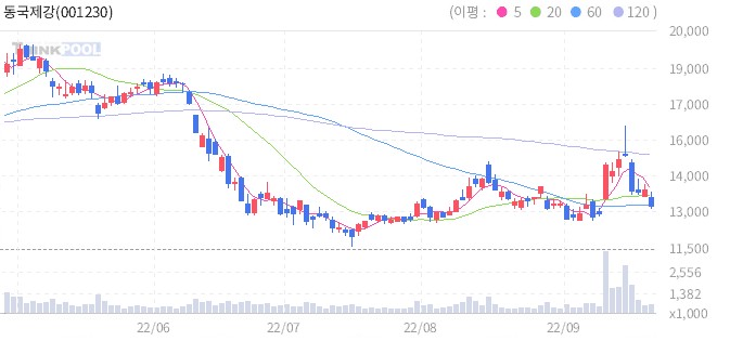 바로 동국제강(001230)이다. 동국제강은 철강재 생산 업체이다. 지난달 로봇 프로세스 자동화(RPA)를 도입하고 프로세스를 고도화해 2025년까지 각 사업장과 영업, 구매 등 전사 확대 적용을 검토하고 있다. 최근 포스코 포항제철소의 태풍 피해로 공급량이 축소되며 철강제품의 가격 상승 기대감이 높아지고 있는 가운데 동국제강 신평 공장 가동 이래 24년 만에 일반형강 누적 생산 500만 톤을 달성했다. 이달 21일 당진공장과 인천공장에 이어 포항공장과 부산공장이 영국표준협회(BSI)가 수여한 에너지 경영 관련 국제표준 인증인 'ISO50001' 인증서를 받으며 투자자들의 주목을 받고 있다.