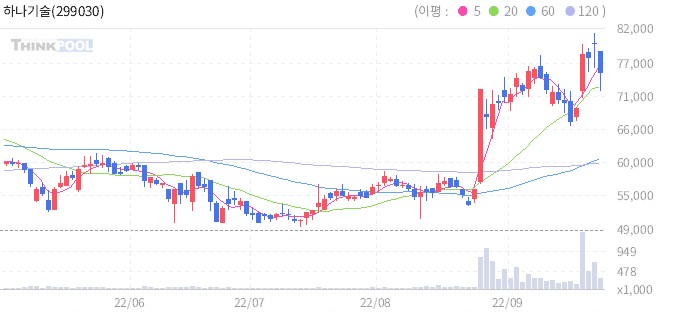바로 하나기술(299030)이다. 하나기술은 2차 전지 공정 장비 제조업체이다. 최근 하나기술은 노르웨이 배터리 업체 '프레이어'와 2025년까지 50GWh 규모의 반고체 배터리 생산설비 구축을 목표로 공급 계약을 체결했다. 프레이어 외에도 '노스볼트', '브리티시 볼트' 등 기존 고객사들의 추가 수주는 물론 신규 고객사들까지 러브콜이 잇따르고 있다. 이처럼 2차 전지 시장 내 반고체 장비 수출에 성공한데다, 폐배터리 검사 장비 분야에서도 선두주자로 자리 잡으면서 시장의 우호적인 평가를 받고 있어 투자자들의 주목을 받고 있다.